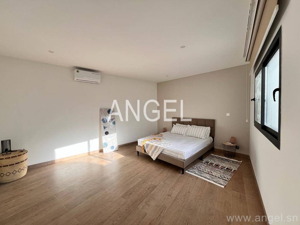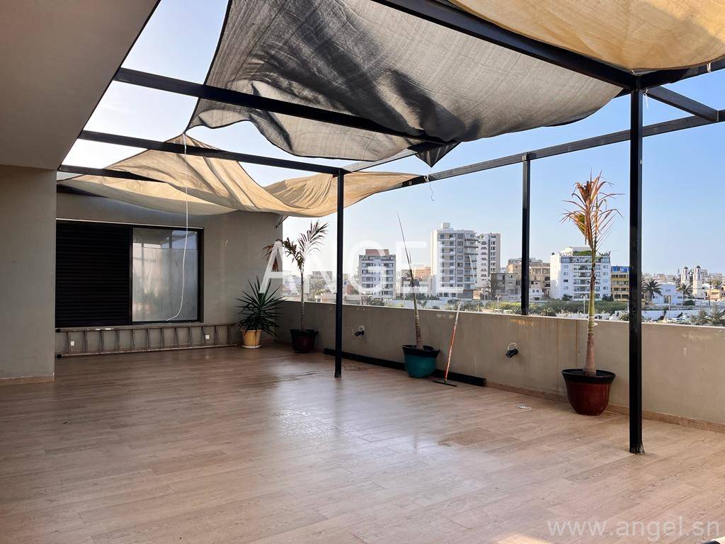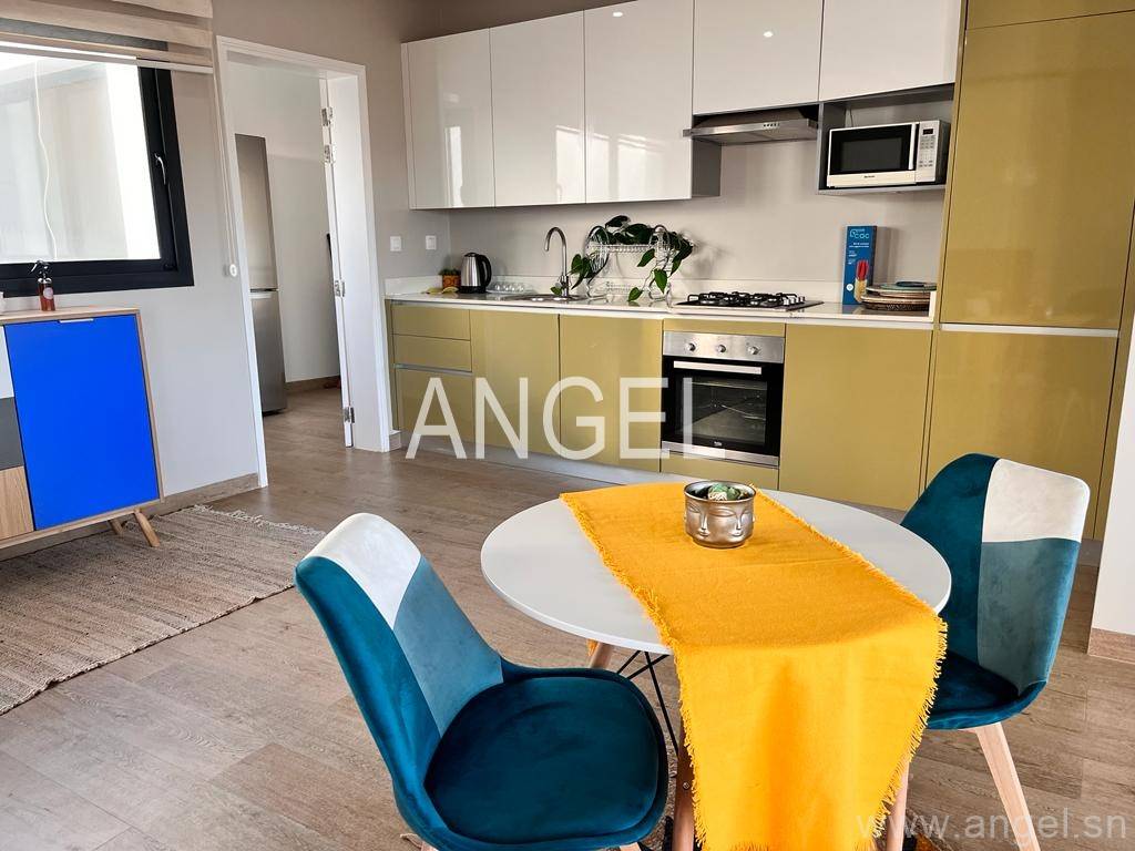 Ce lumineux appartement est au 4ème étage d’un immeuble avec gardiennage et groupe électrogène et une grande terrasse. Il est composé d’1 chambre avec dressing et salle de bain, salon et salle à manger, cuisine équipée, buanderie, toilette visiteur, toilette domestique.