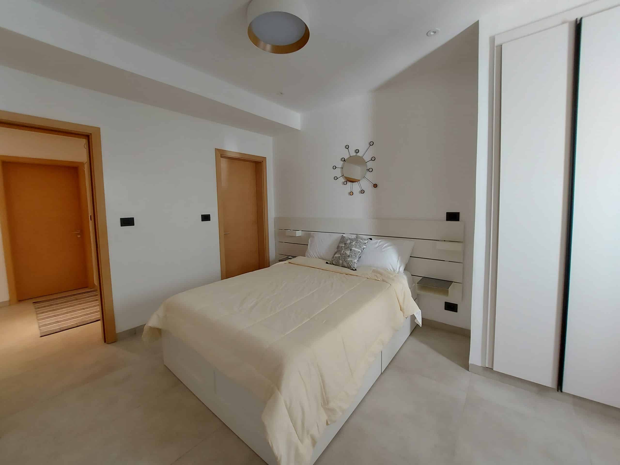 Dans un immeuble neuf, un appartement totalement meublé en DUPLEX de 3 chambres composé : d’une entrée, un toilette visiteur, un séjour salle à manger, une terrasse vue sur mer, une cuisine équipée, trois chambres avec salle d’eau et placards.