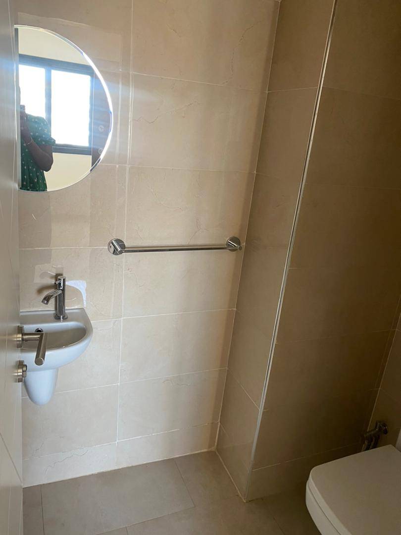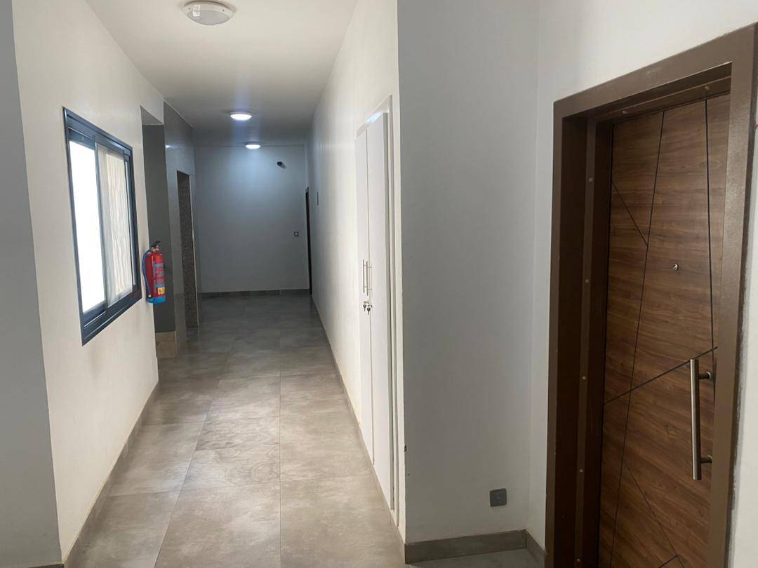 Appartement moderne au 5e étage à louer dans un immeuble propre sis à Mermoz. Il se compose de 2 chambres climatisées avec toilettes internes équipée de cabine de douche chacune, d’un salon, d’une cuisine équipée de placards donnant sur une buanderie, d’une toilette visiteur et toilettes domestiques et chauffe-eau.