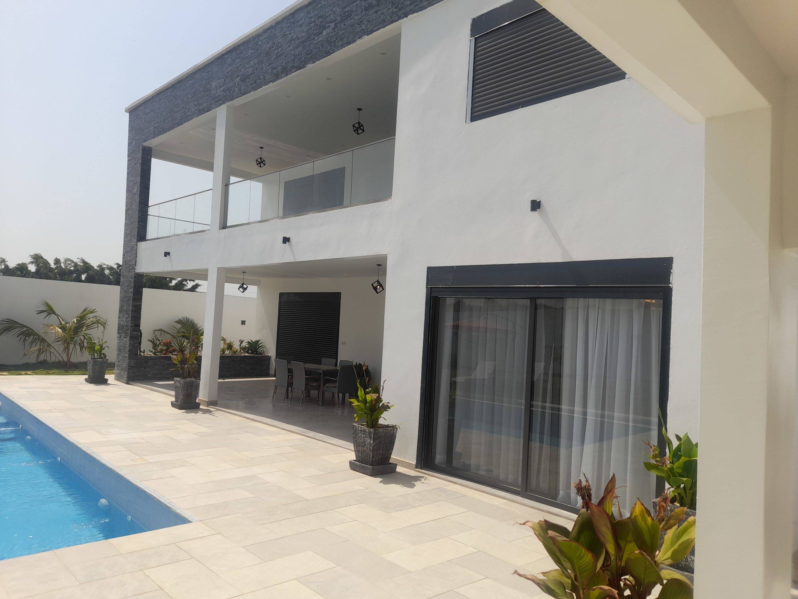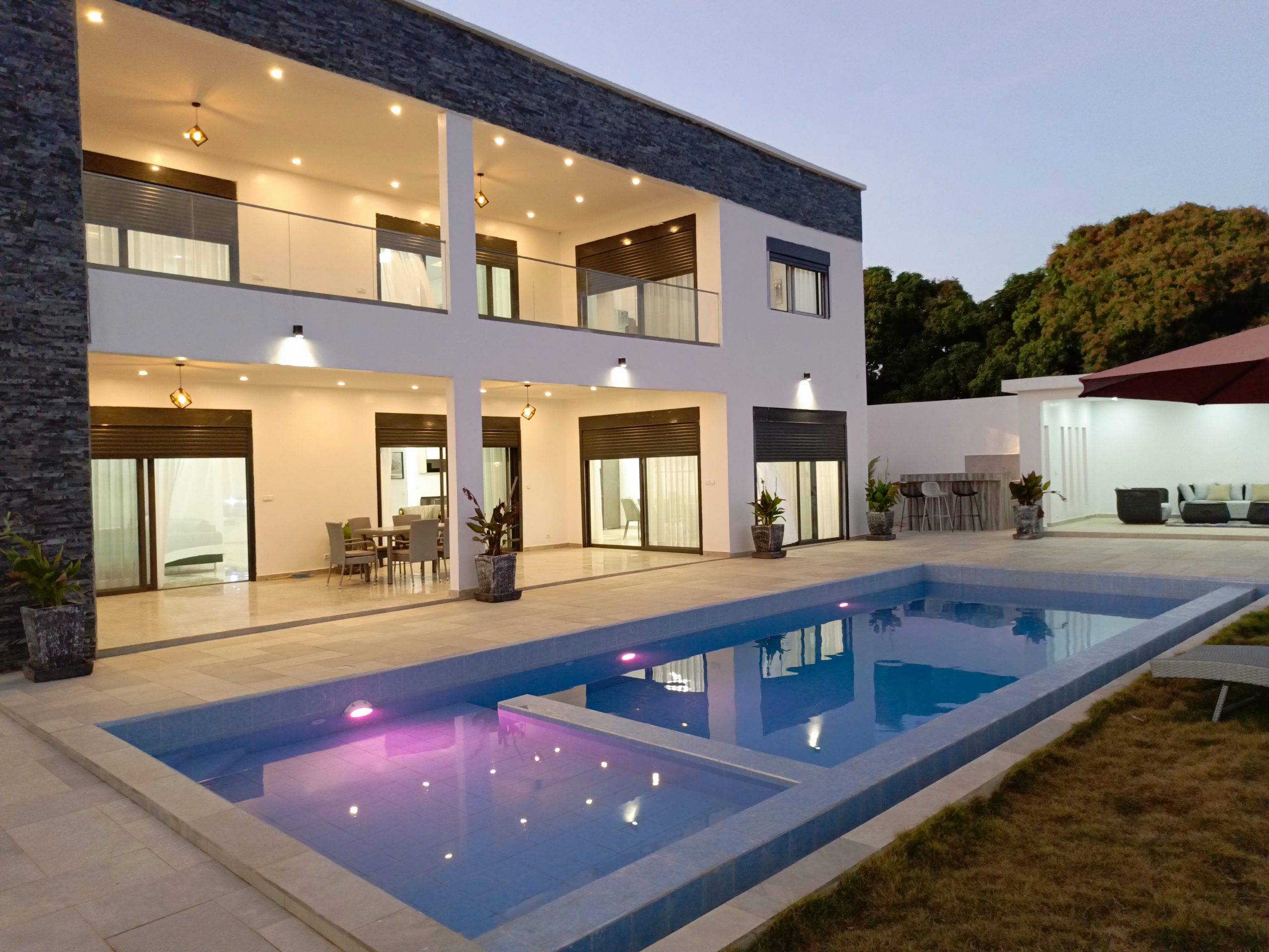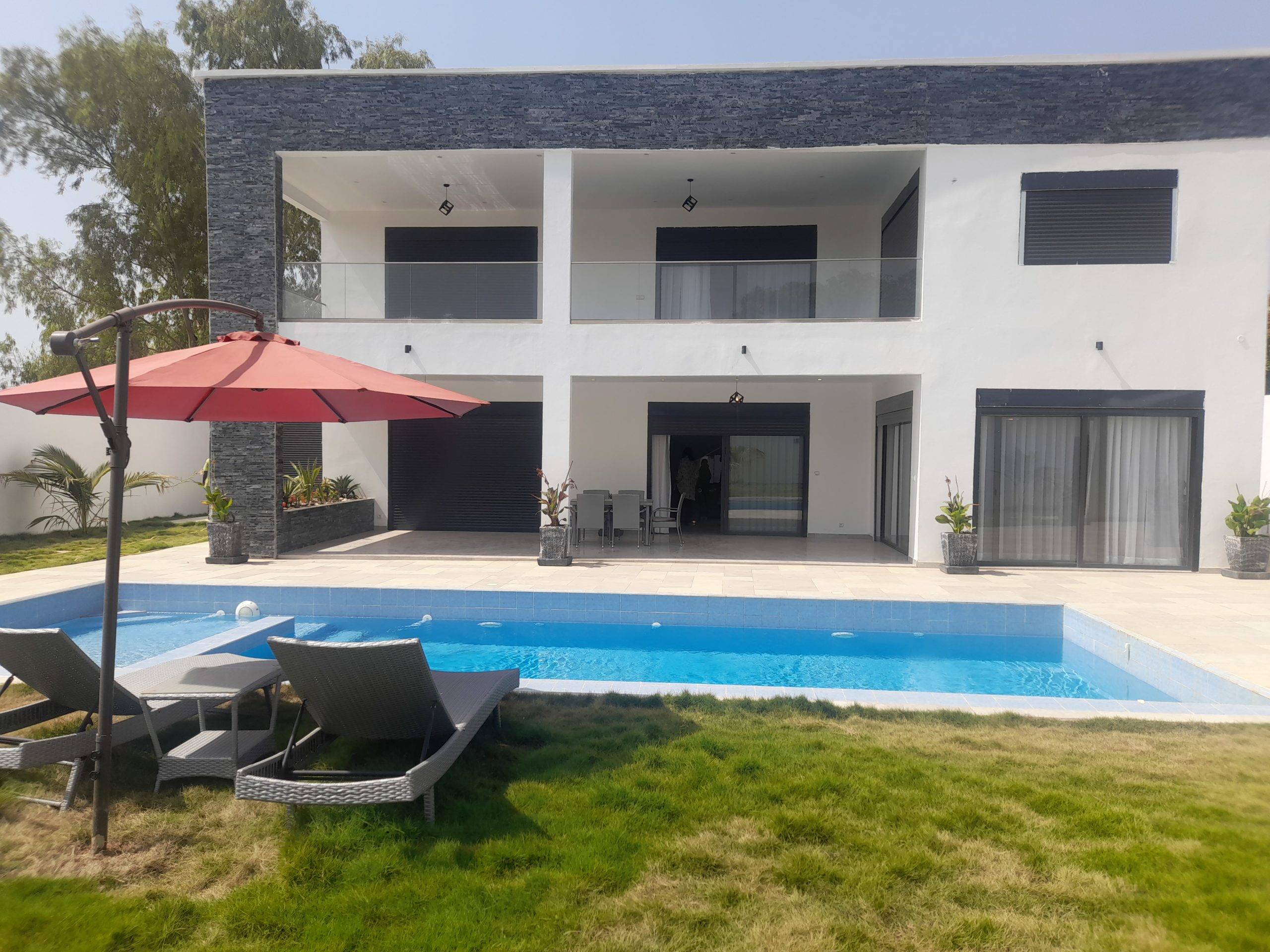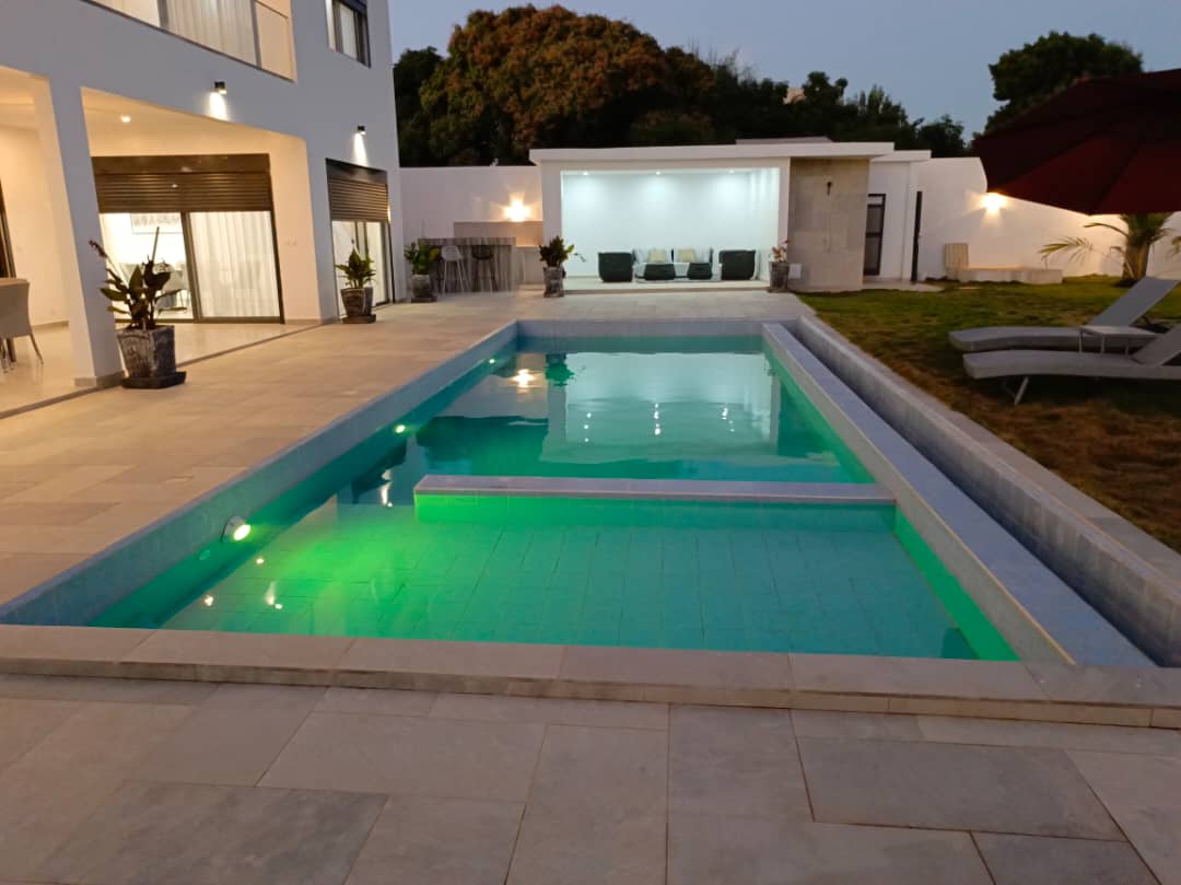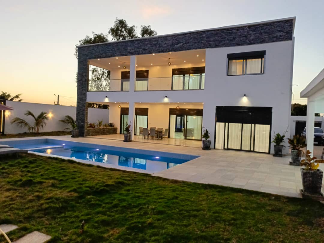 Ngaparou – Villa contemporaine de standing en R+1 avec piscine à vendre.