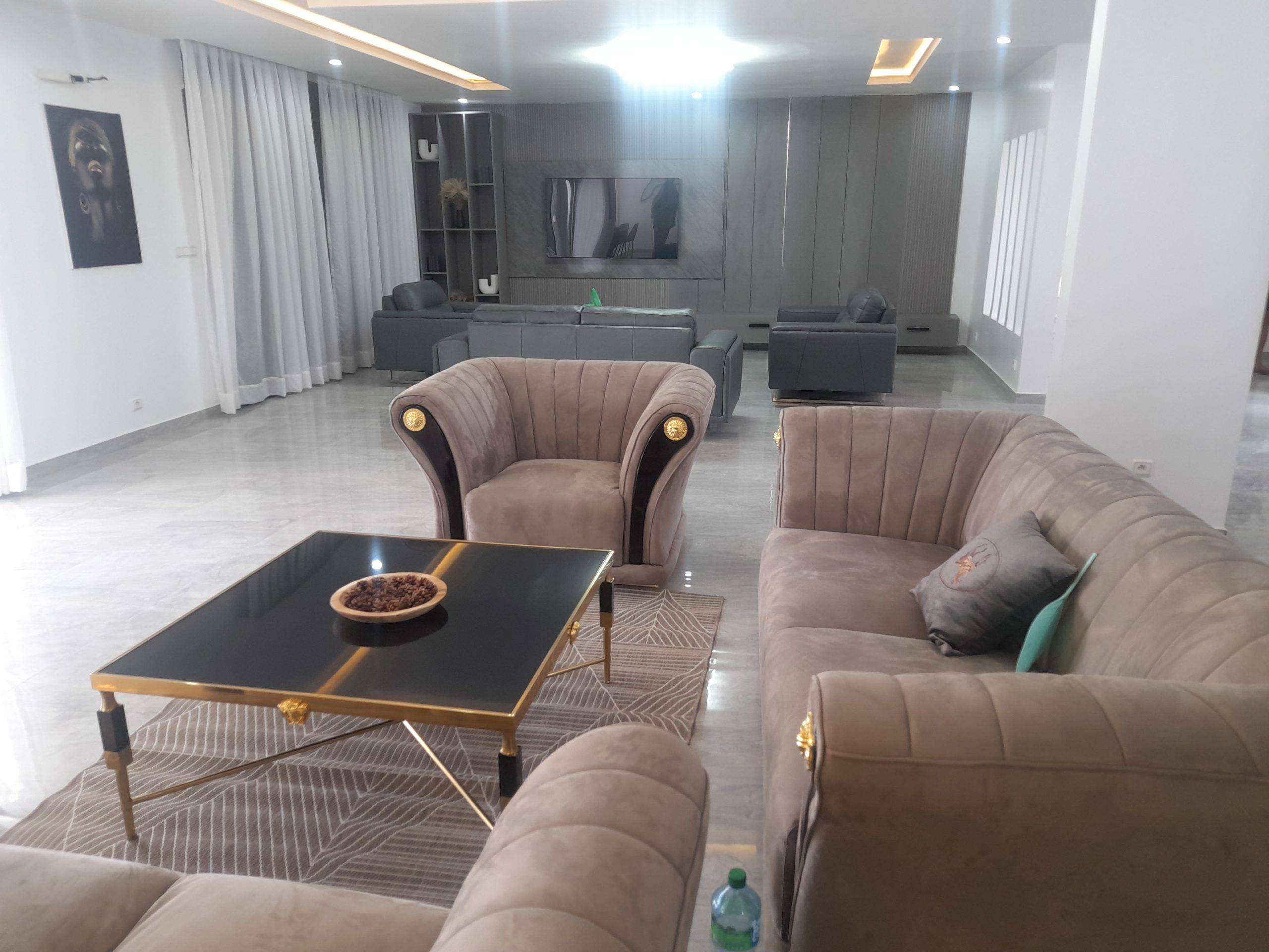 Plusieurs salons aux espaces variés et meublés avec subtilité.
