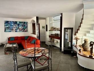 – la villa principale comporte: Une Grande terrasse couverte, un vaste séjour/salle à manger très lumineux, une cuisine ouverte avec arrière cuisine. une grande baie vitrée et vue sur la piscine .