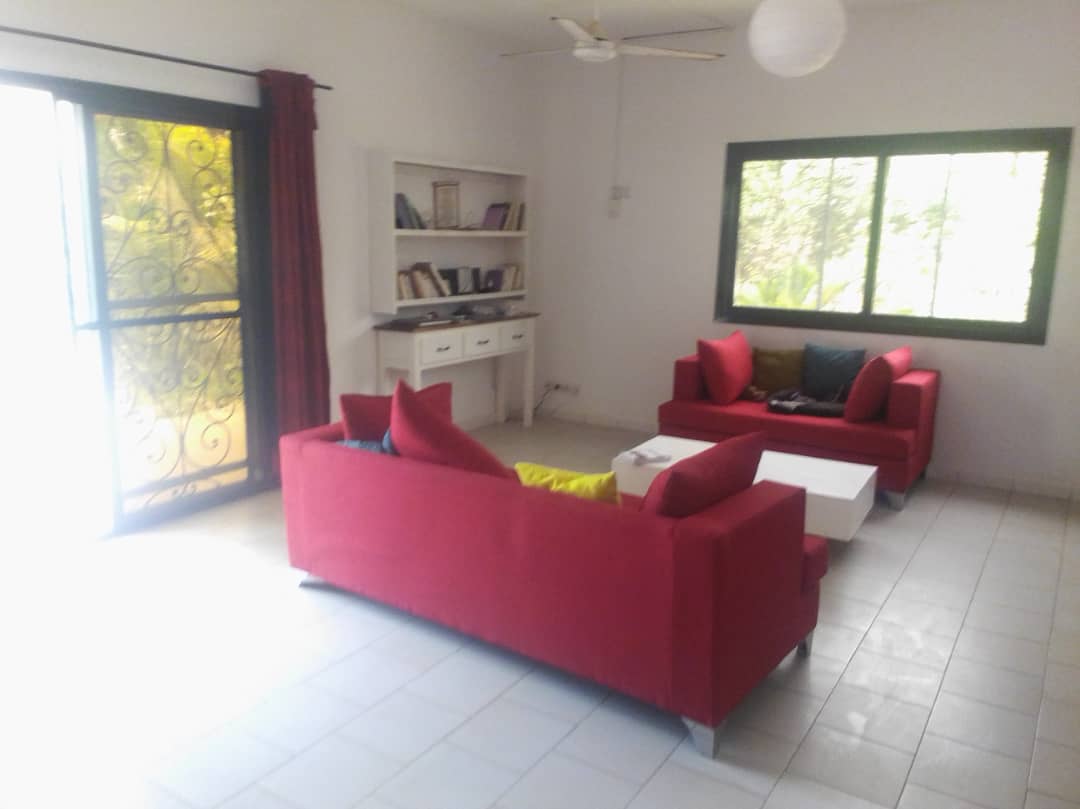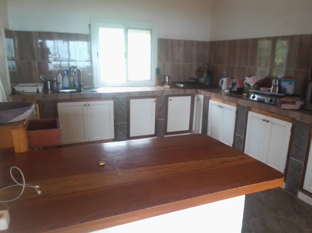 Nianing Poste – Villa en R+1 avec chaque étage un salon, une cuisine donnant sur une terrasse de 30 m2 chacune. Plus de 800 m2 de terrain nu donnant directement accès à la plage de façon privative.