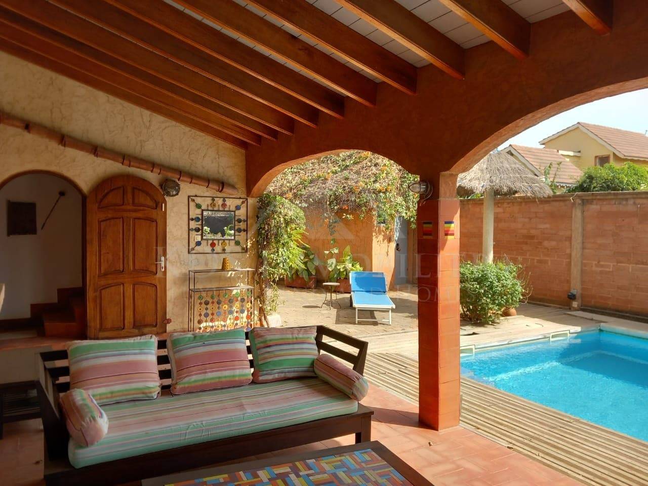 villa indépendante (bâti environ 300m2) et meublée artisanalement avec piscine