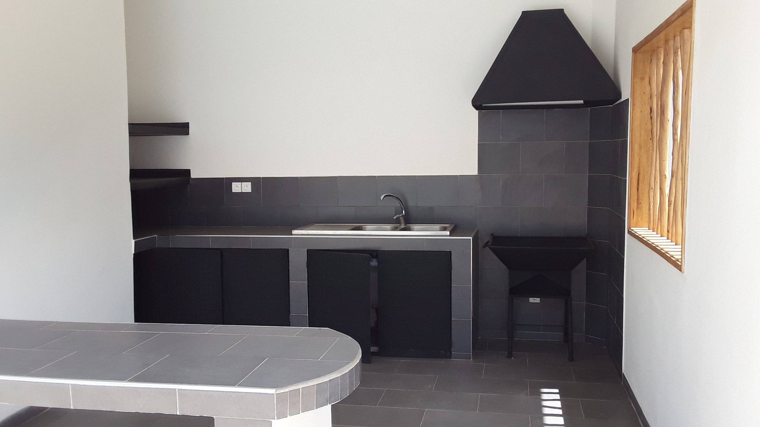 Cuisine américaine et arrière cuisine avec barbecue.