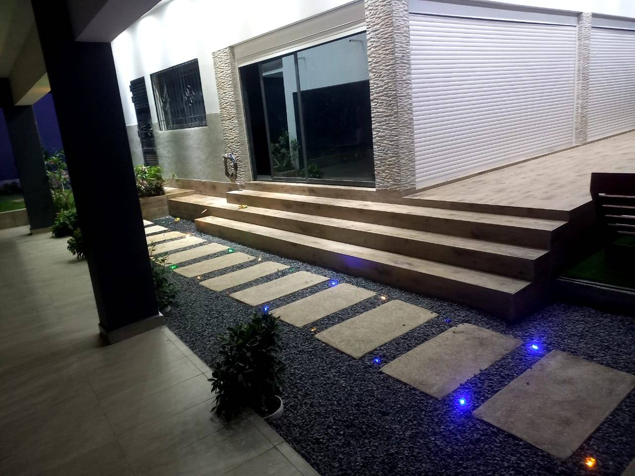 Points lumineux nombreux. Grandes surfaces vitrées.