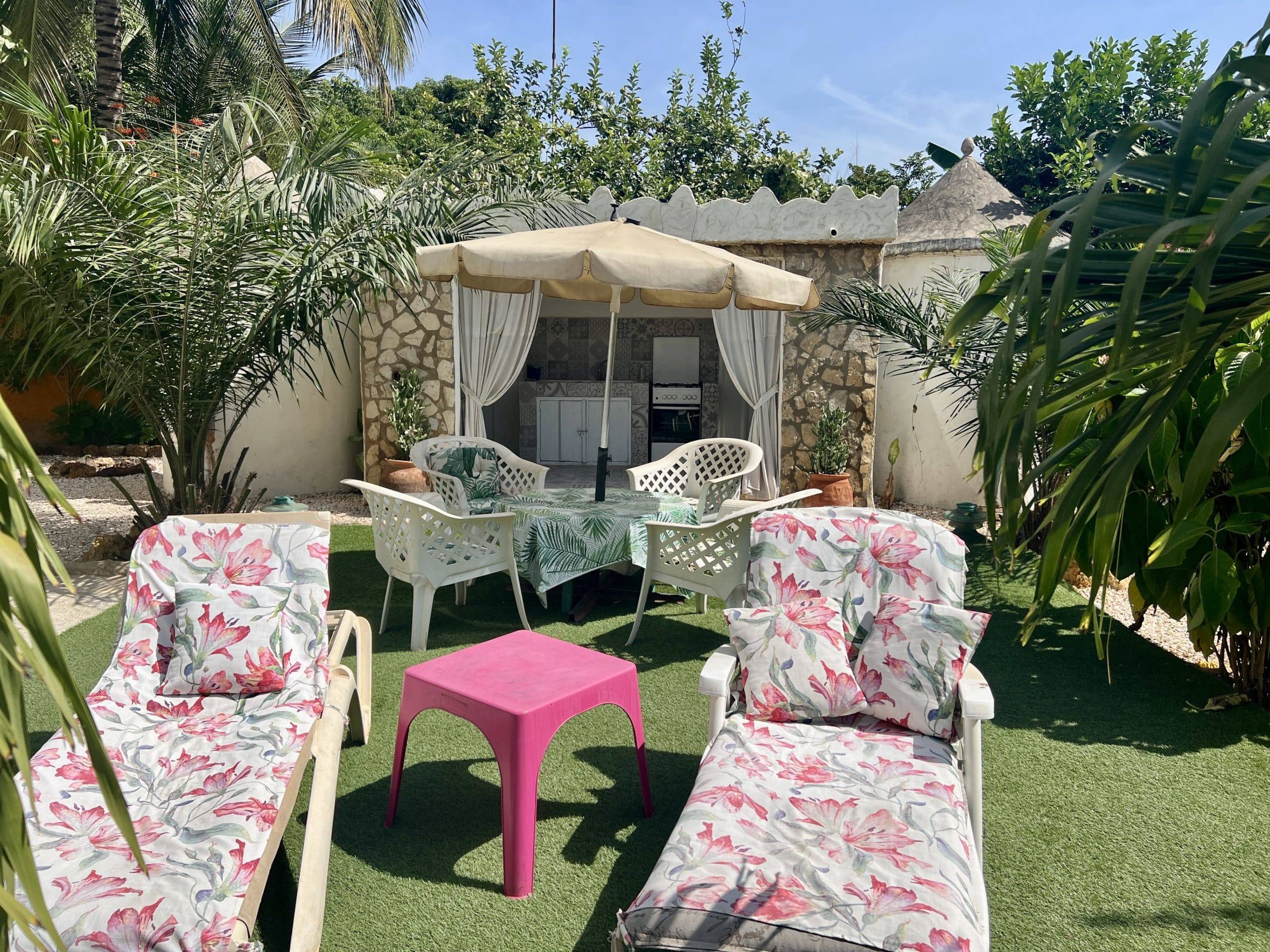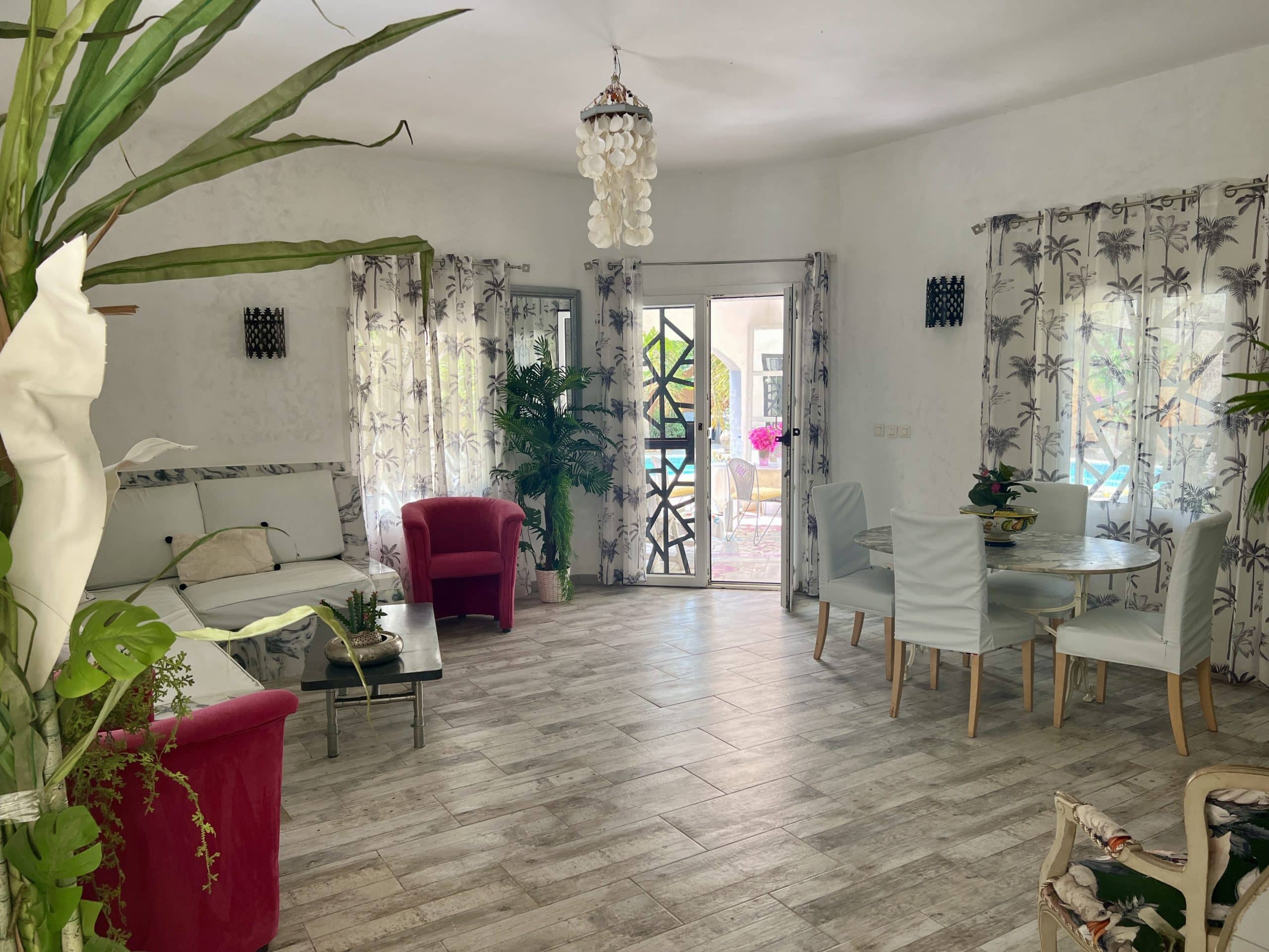 Villa à la décoration baroque et chaleureuse, un espace ou règne une atmosphère nature et zen…Composé d’un bâtiment principal avec une grande terrasse couverte, un salon/SàM lumineux.